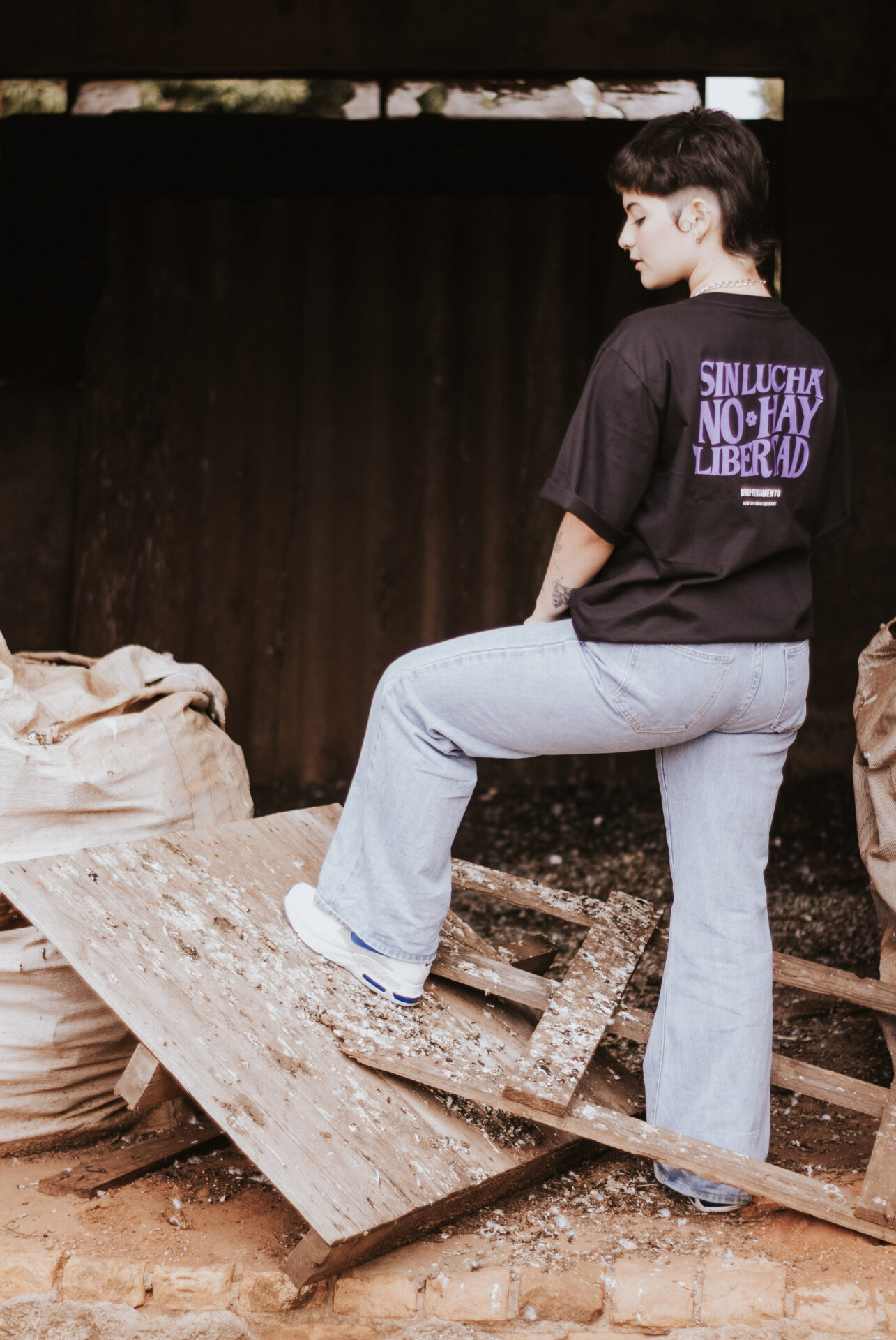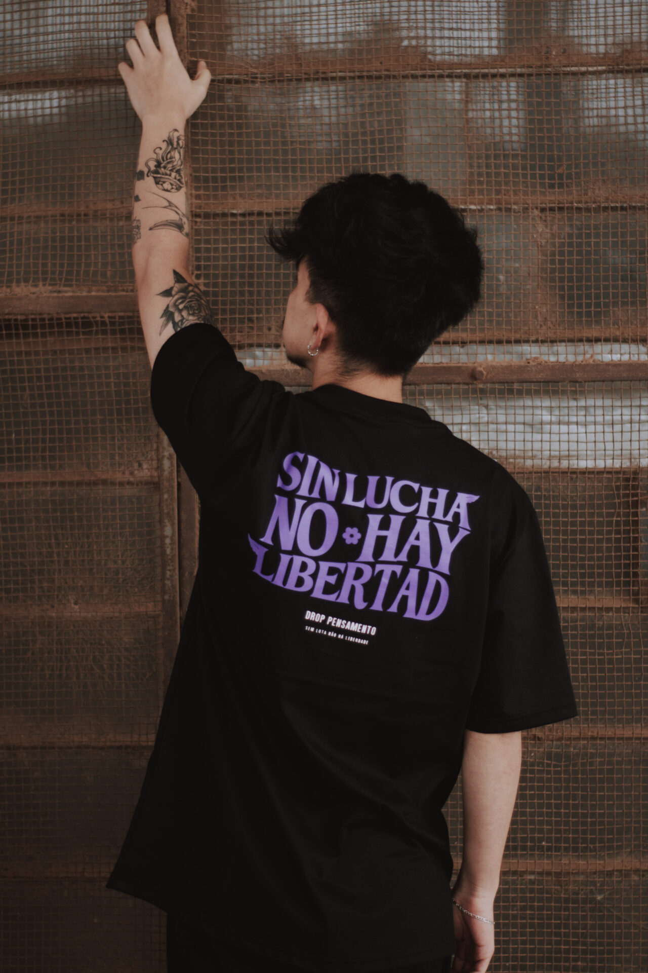 A frase estampada “SEM LUTA NÃO HÁ LIBERDADE” faz alusão aos levantes populares que aconteceram em toda a América Latina no contexto das ditaduras militares. No Chile, nossa maior referência, a população lutou bravamente contra a ditadura de Pinochet.